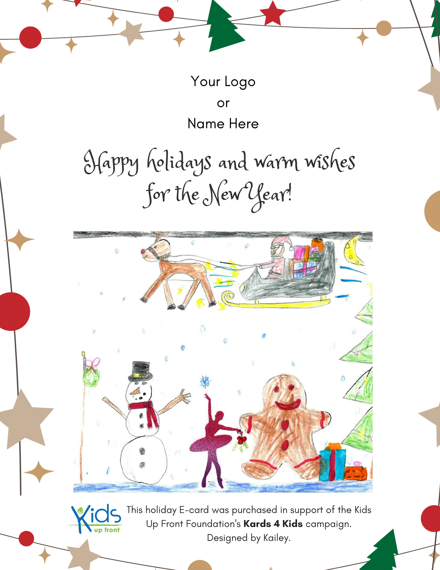 Doing e-cards this holiday season? Show your support for Kids Up Front by making a donation and sharing our mission in your holiday emails.